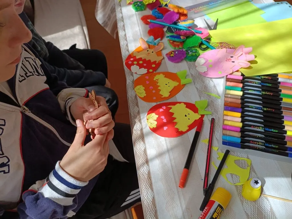 4 апреля, в преддверии светлого праздника Пасхи, в сельском клубе " Казачий ", для детей прошёл творческий мастер - класс " Пасхальный сувениры ". Целью данного мероприятия было создание символа праздника яйца и цыплёнка, выполненных из цветного картона, бумаги и фоамирана. Дети с неподдельным интересом склеивали детали, старательно вырисовывали глазки цыплятам, украшали декором свои поделки. Культорганизатор Горбань Зинаида, с присущей ей нежностью и терпением, помогала ребятам, направляя их руки и делясь секретами мастерства. У всех пасхальные сувениры получились яркие и красочные. Каждая поделка, рождённая в этот день, стала не просто игрушкой, а маленьким символом пасхальной радости, хранящим тепло рук и сердец своих создателей.